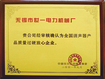 本廠視質量為生命,并已率先通過ISO9001:2008國際質量體系認證,是“重合同、守信用”的AAA級企業、無錫市首批“五星級”企業和計量合格單位,成為“全國消聲器 質量過硬放心企業”和國內大型鍋爐廠的合格供方。受國家環??偩值难?,制定了《高壓氣體排放小孔消聲器》認定技術條件(HJT382-2007)。
